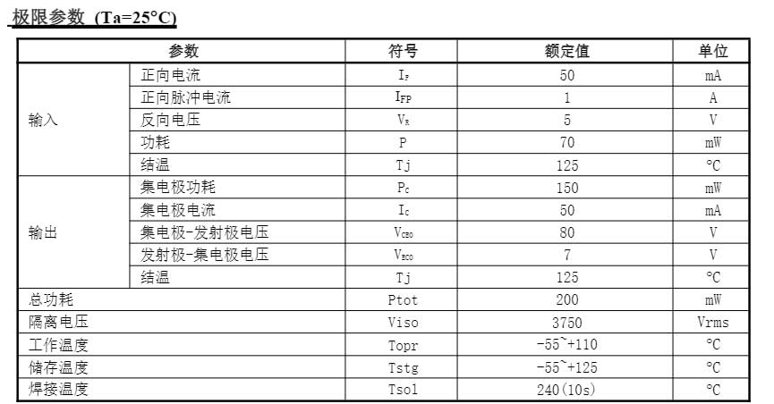 电流转换比(CTR)范围:50~600%(IF=5mA,VcE =5V)